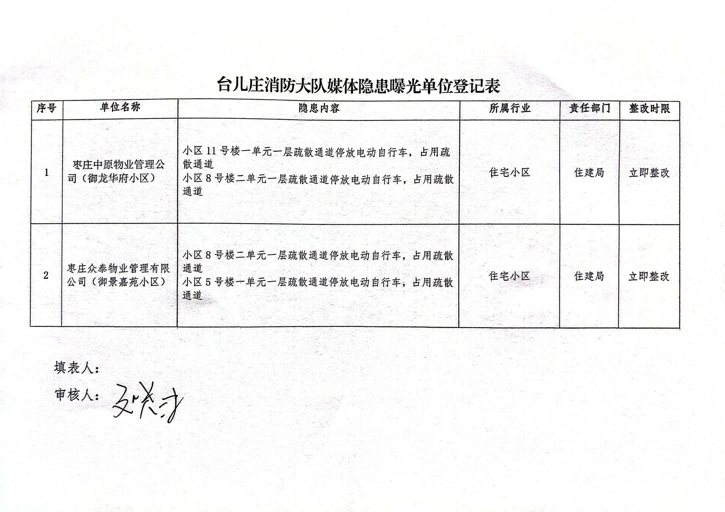 台儿庄区消防救援大队曝光电动自行车隐患问题单位