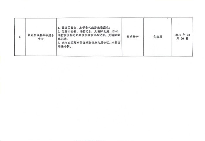 台儿庄区消防救援大队集中曝光一批火灾隐患和消防违法行为单位