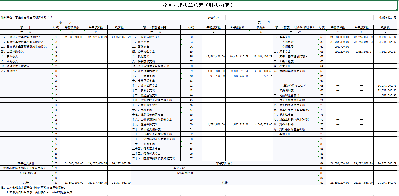 【预决算信息】台儿庄区明远实验小学2025年决算