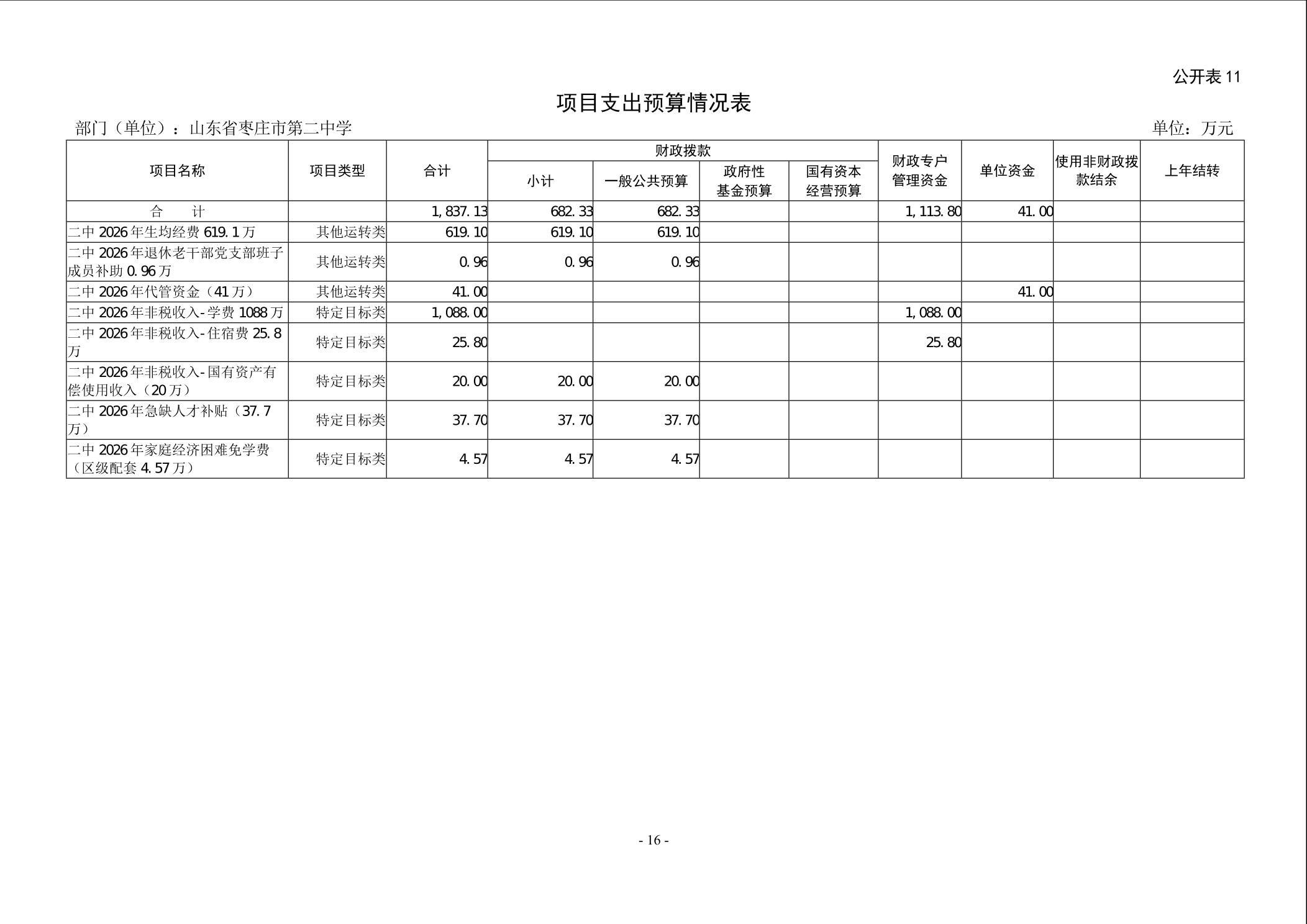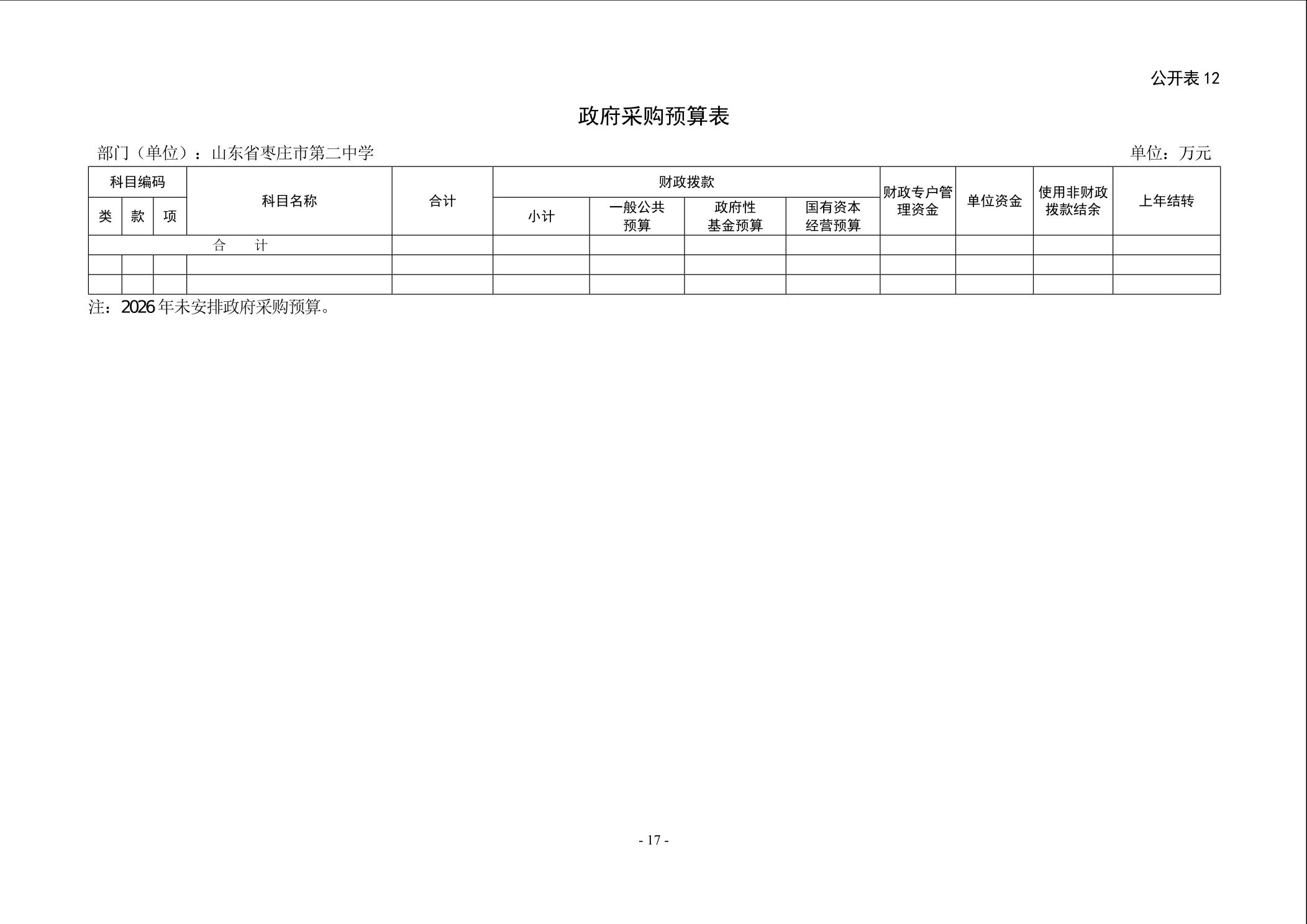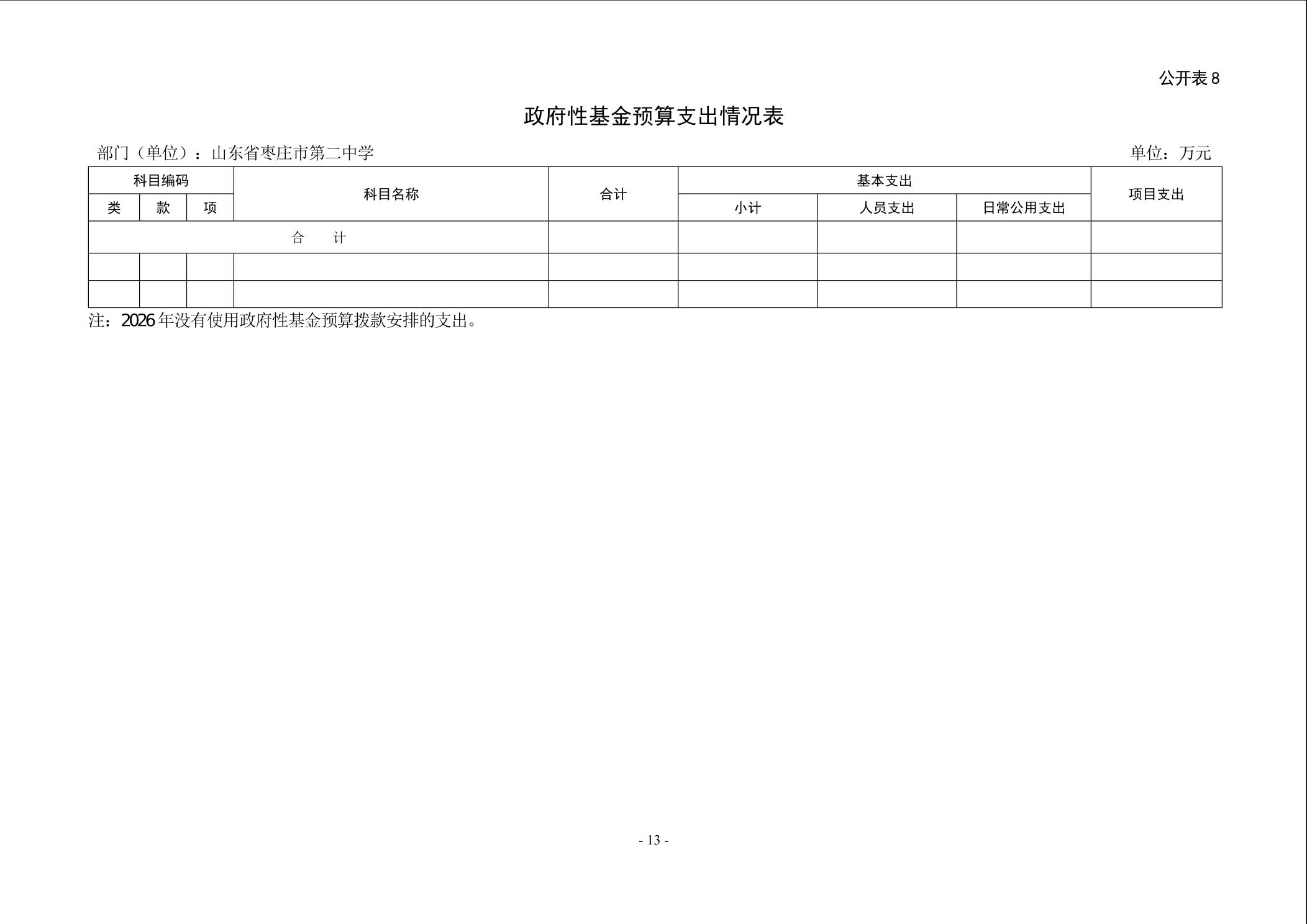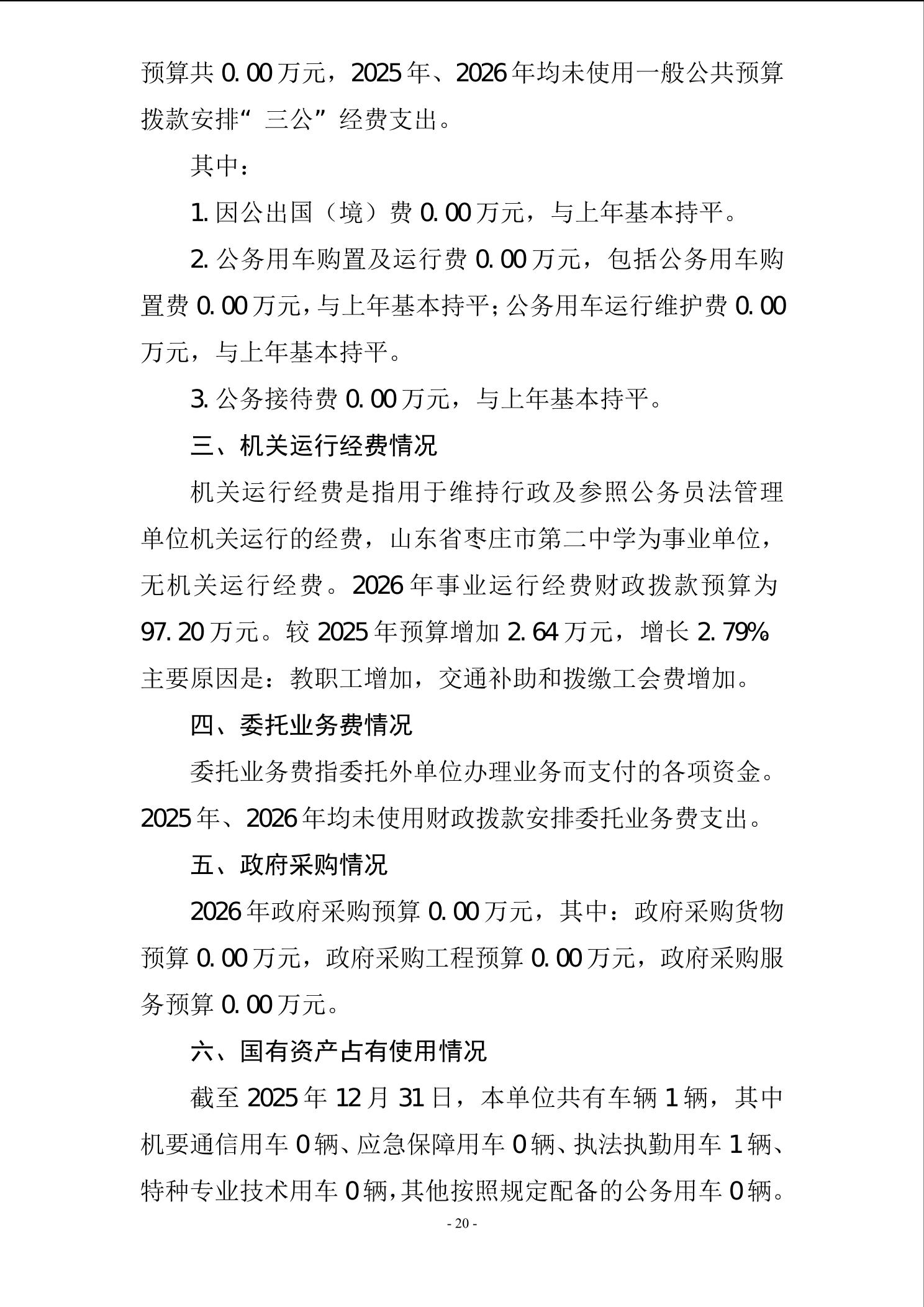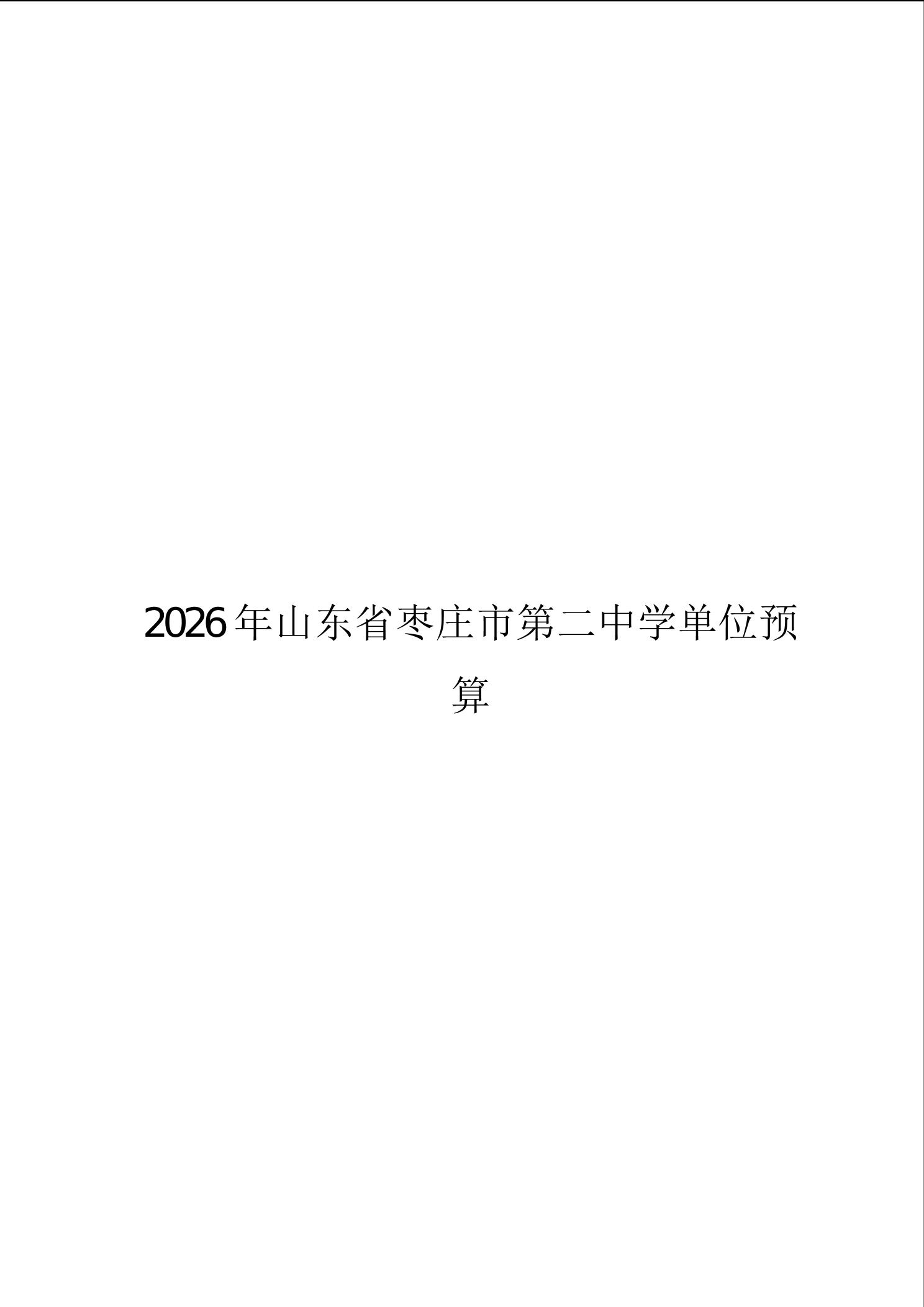 【预决算信息-预算信息】2026年山东省枣庄市第二中学单位预算公开