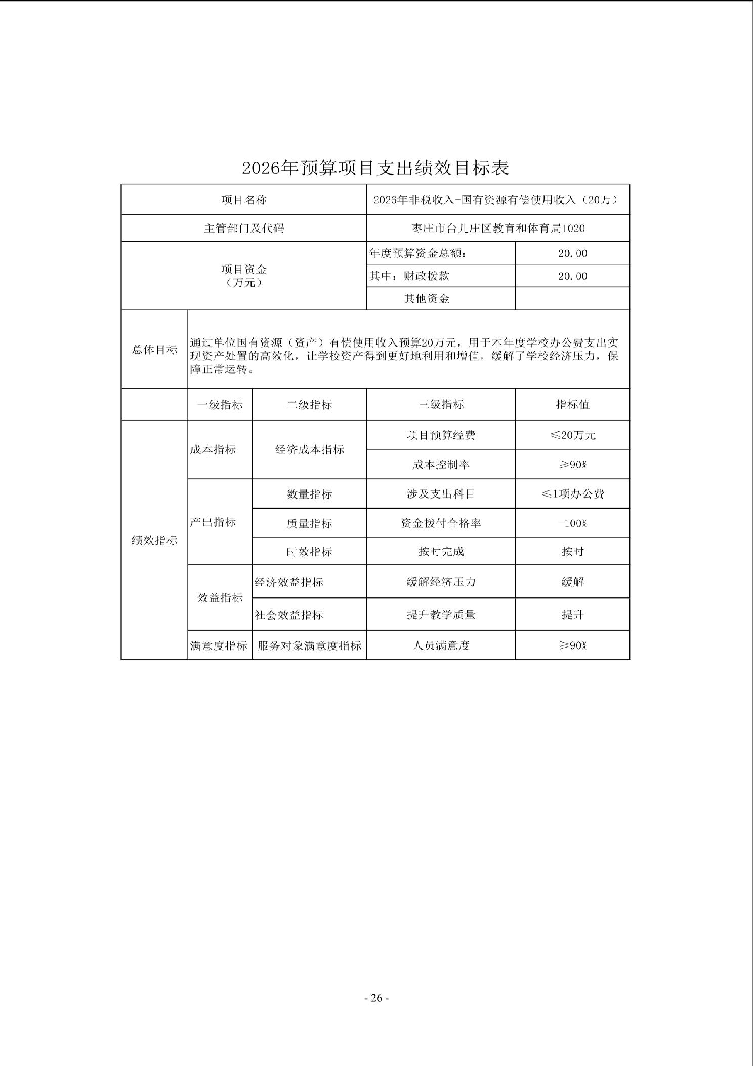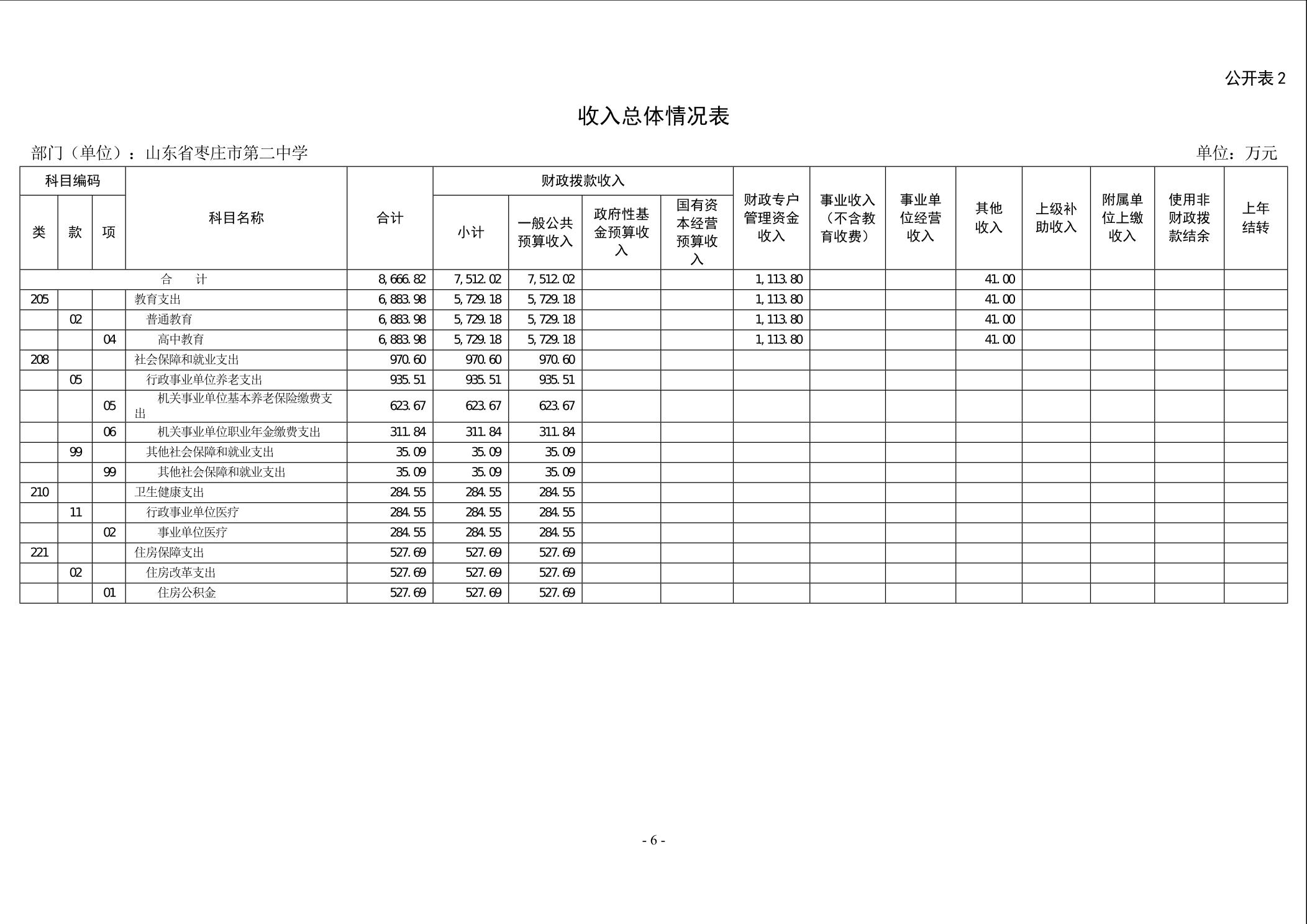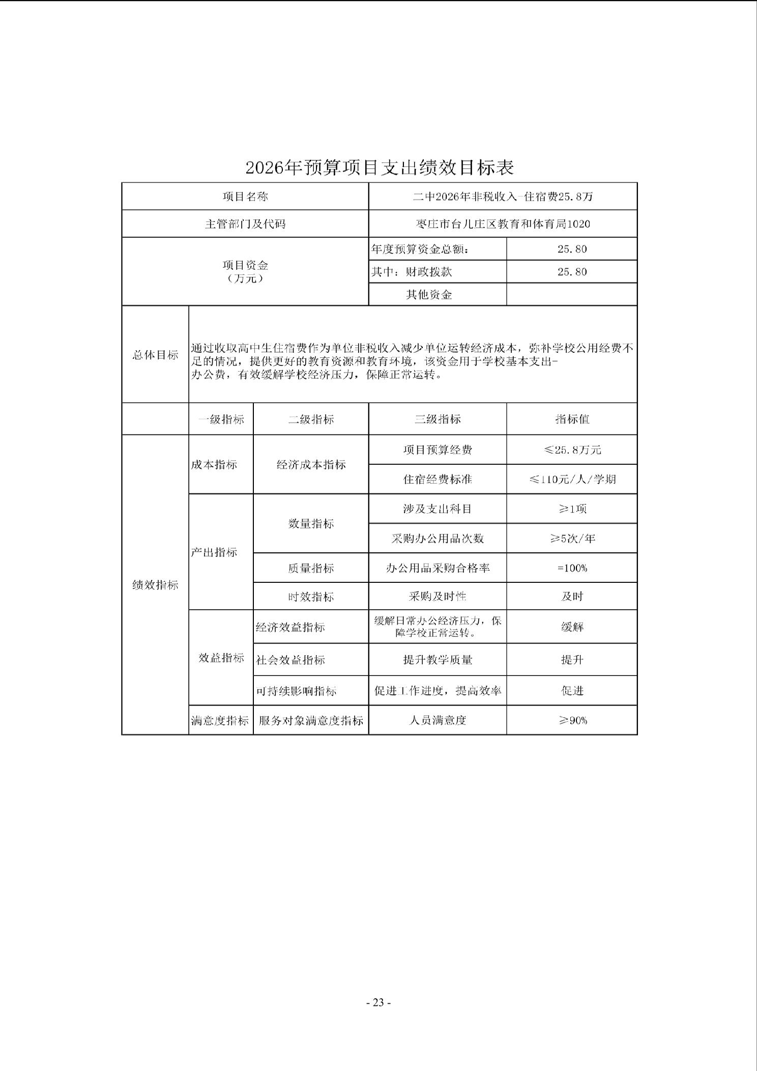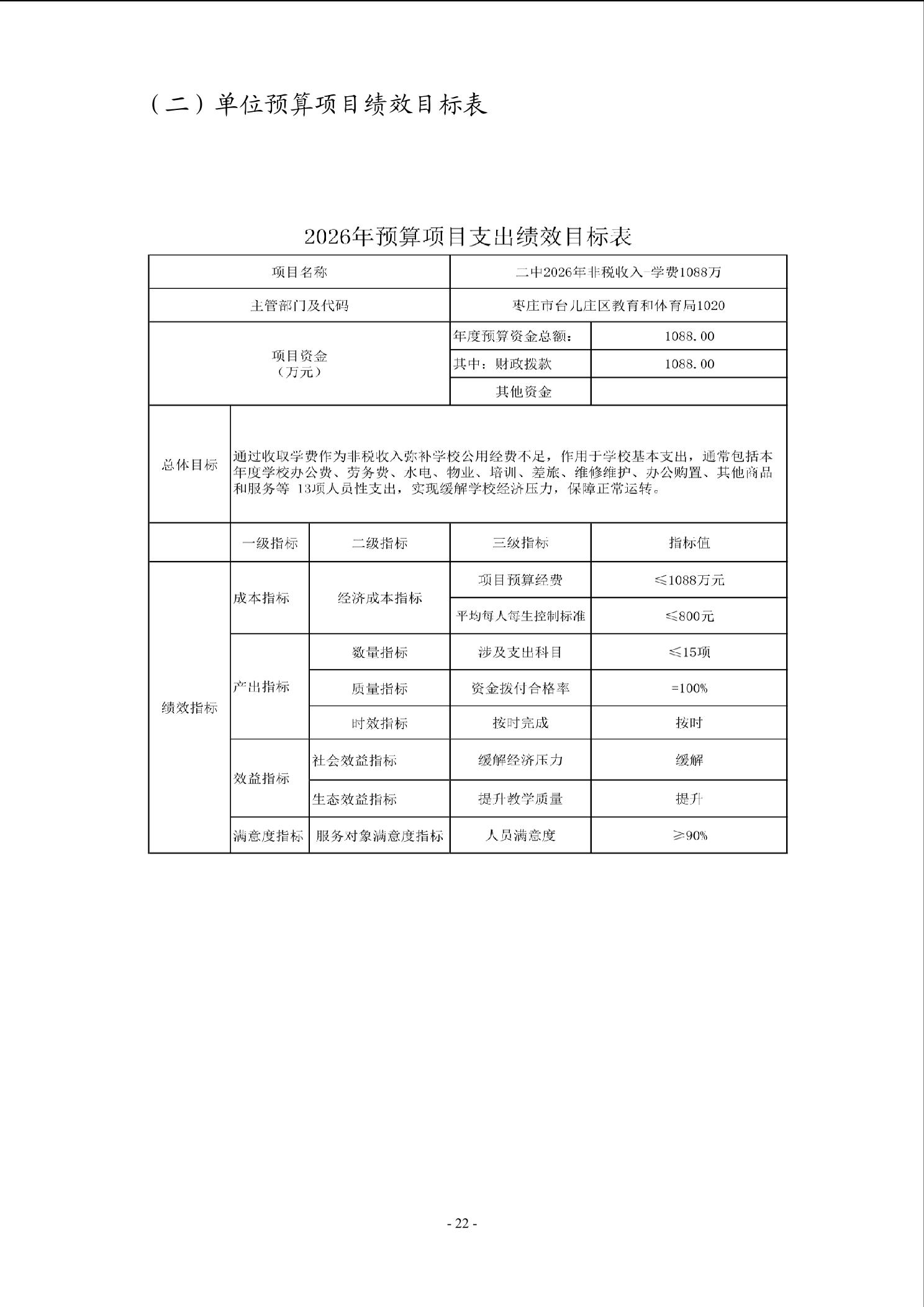 【预决算信息-预算信息】2026年山东省枣庄市第二中学单位预算公开