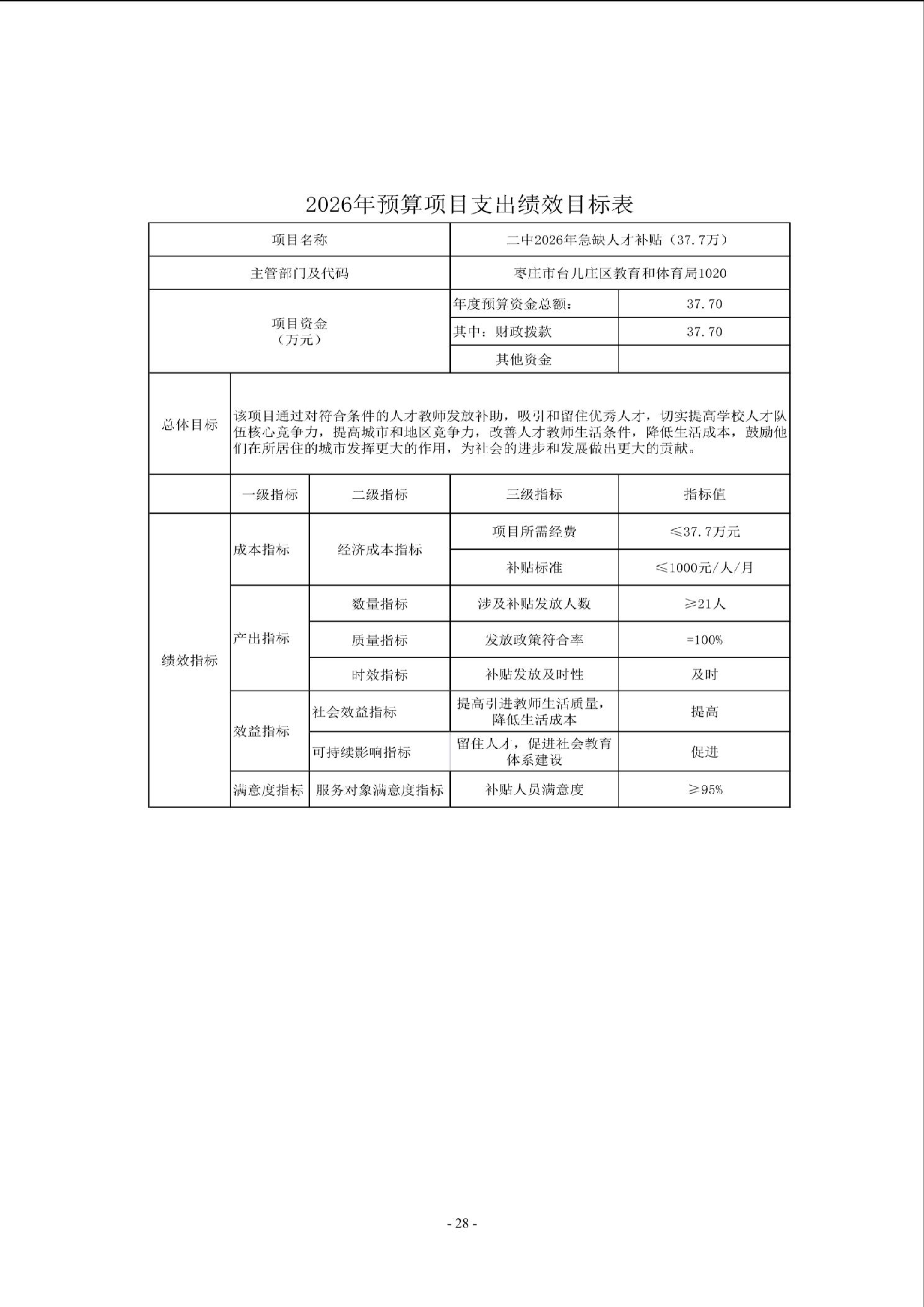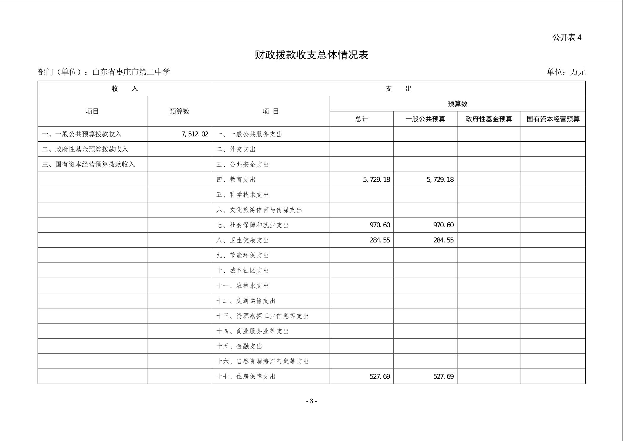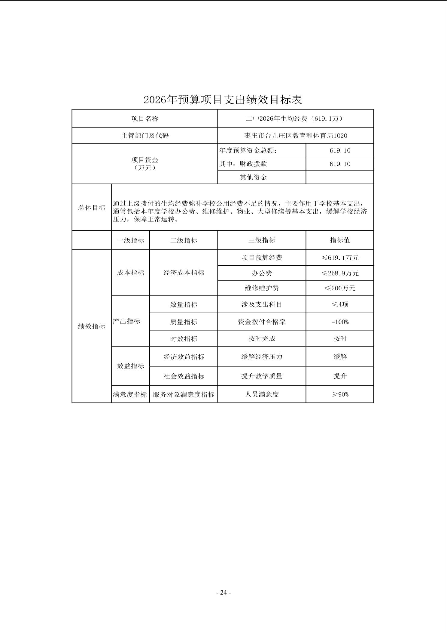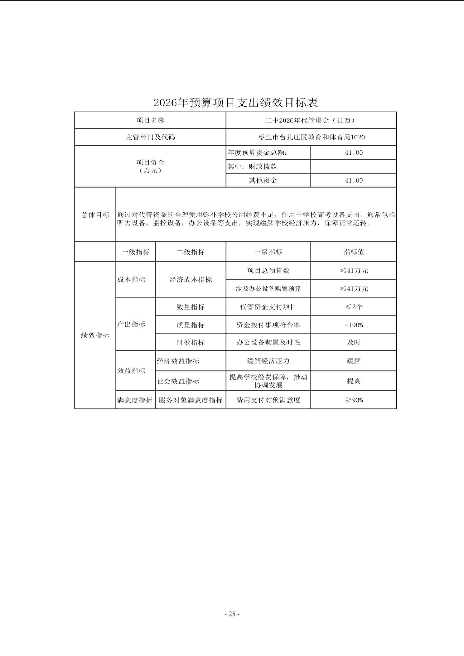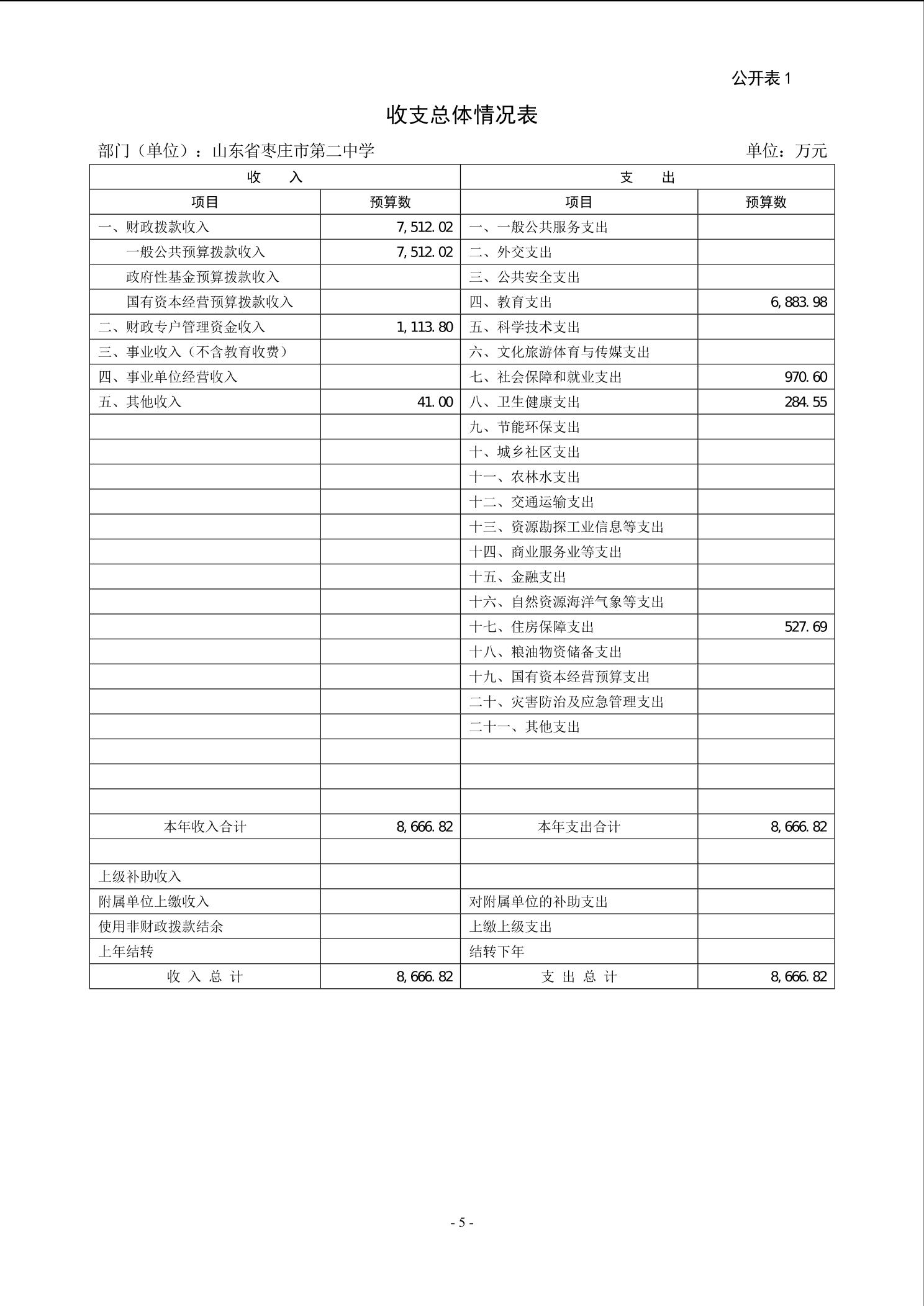 【预决算信息-预算信息】2026年山东省枣庄市第二中学单位预算公开
