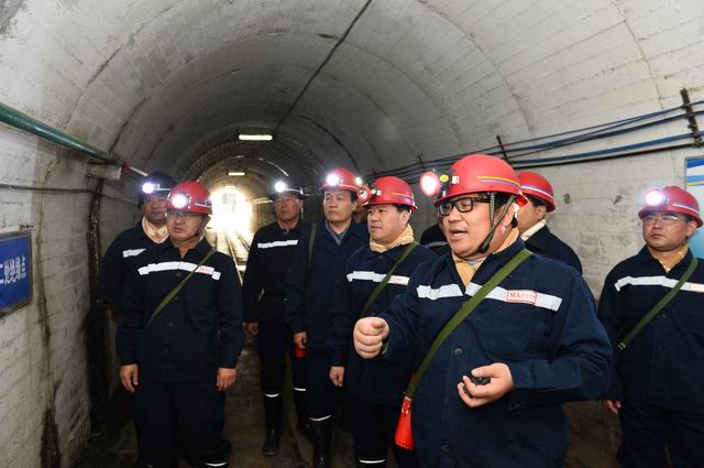 王晁煤电集团党委委员、总工程师、耳海煤矿董事长管书洋、耳海煤矿总经理李建国在工作一线