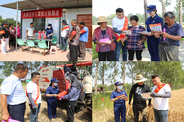 四是深入田间地头开展消防宣传活动。大队组织宣传人员、消防志愿者、村干部、深入到防火执勤点及田间地头普及麦收防火知识,向农机手讲解车用灭火器使用方法,提醒其收割前务必检查收割机电气线路,确保机器安全运行。