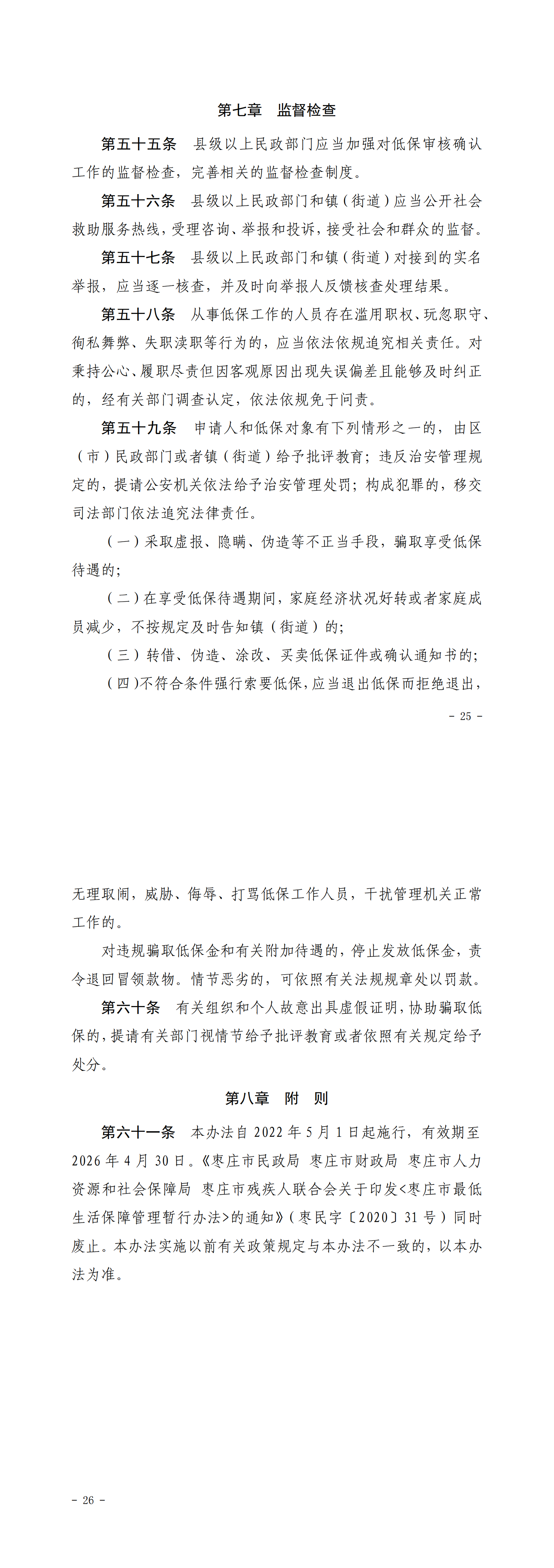 • 标  题:《枣庄市最低生活保障管理办法》