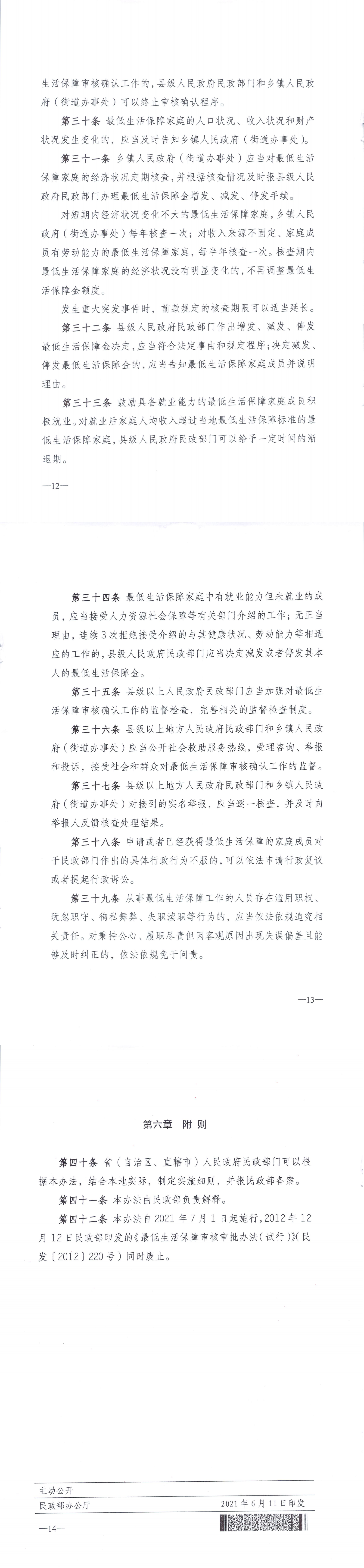 民政部关于印发《最低生活保障审核确认办法》的通知