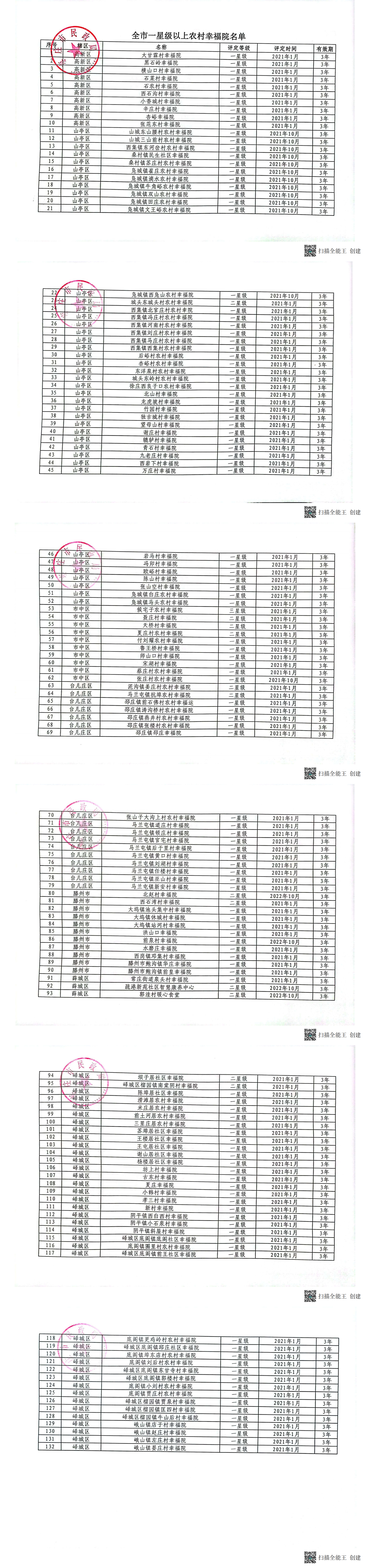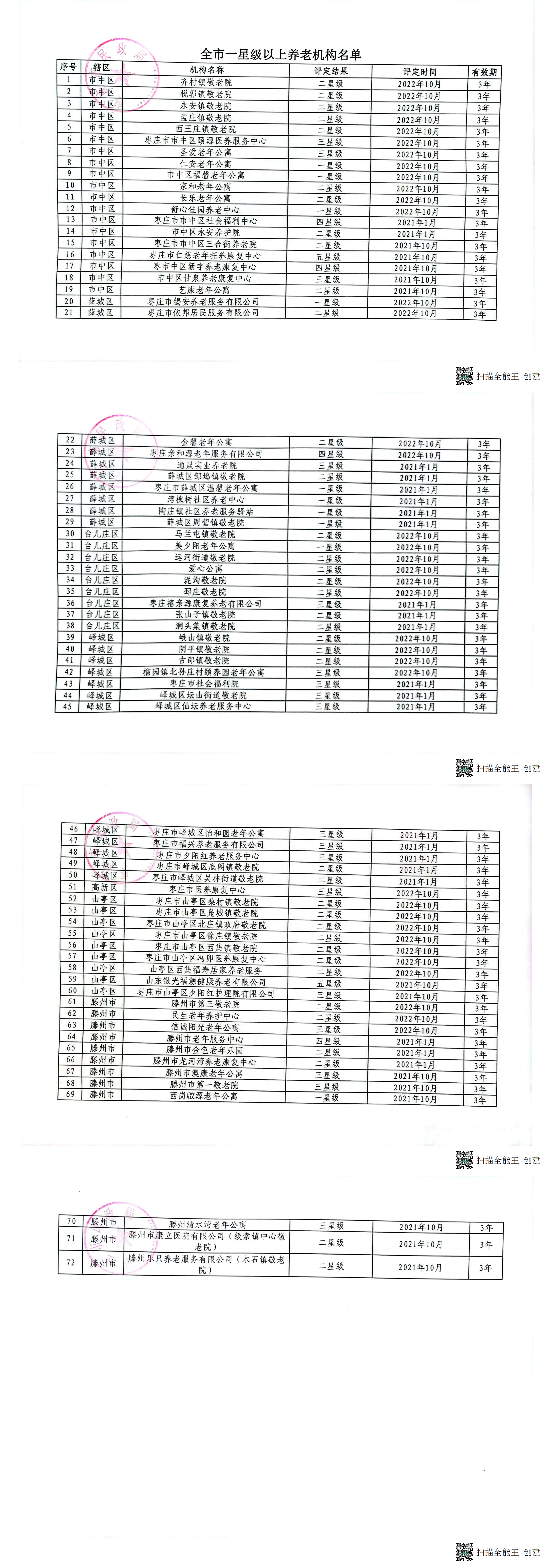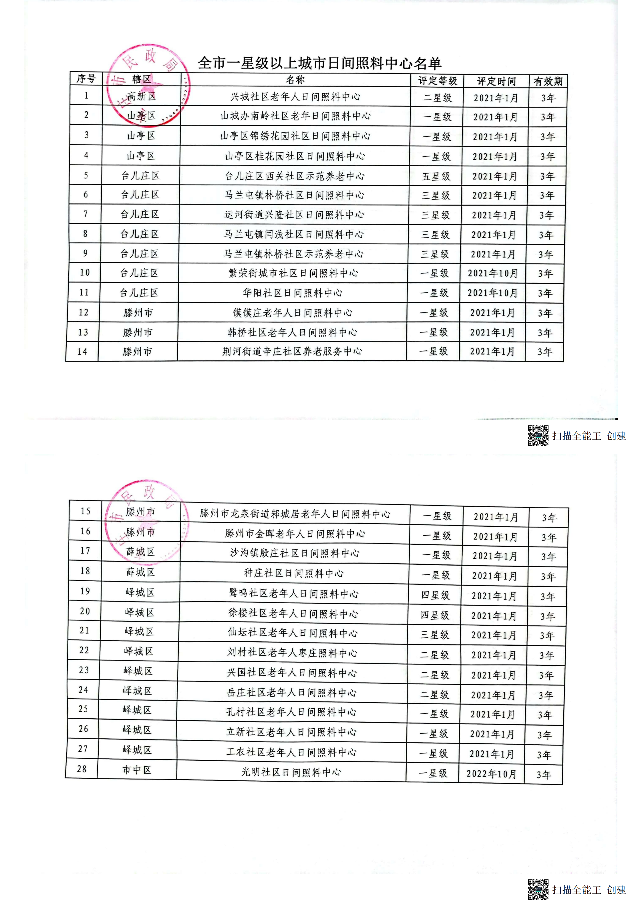 台儿庄区养老服务设施评估结果公示