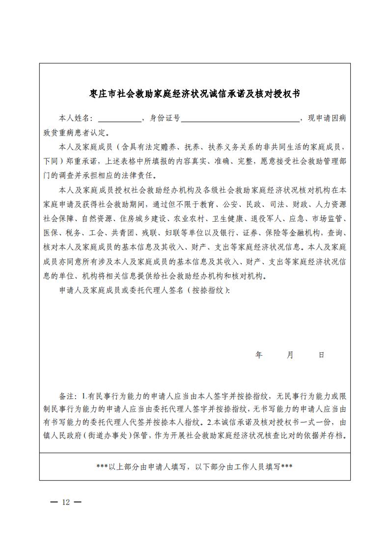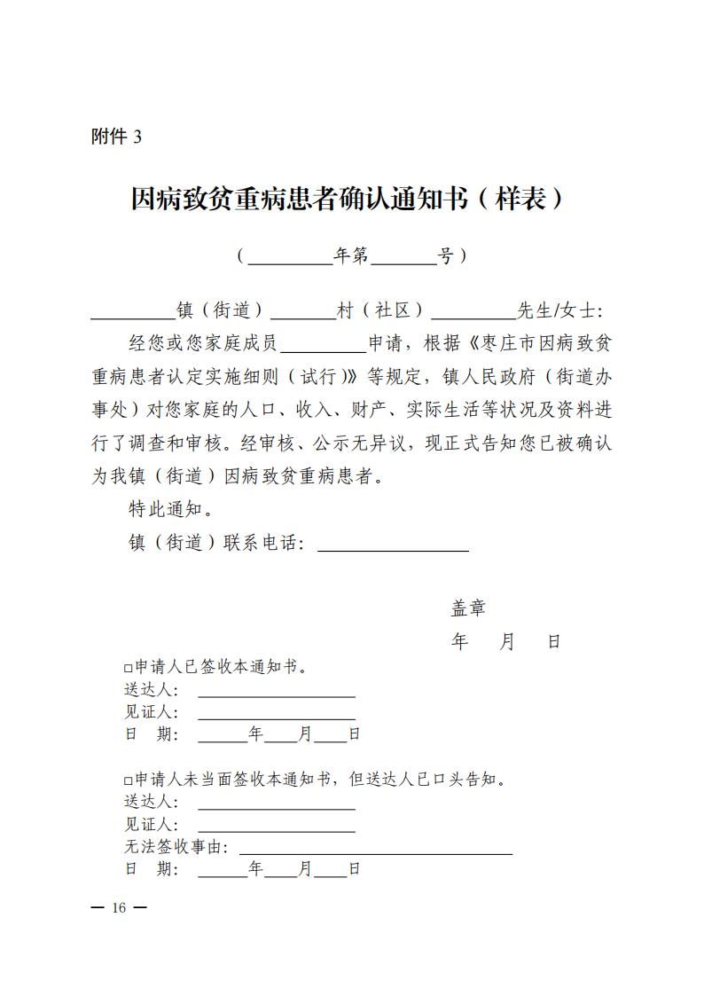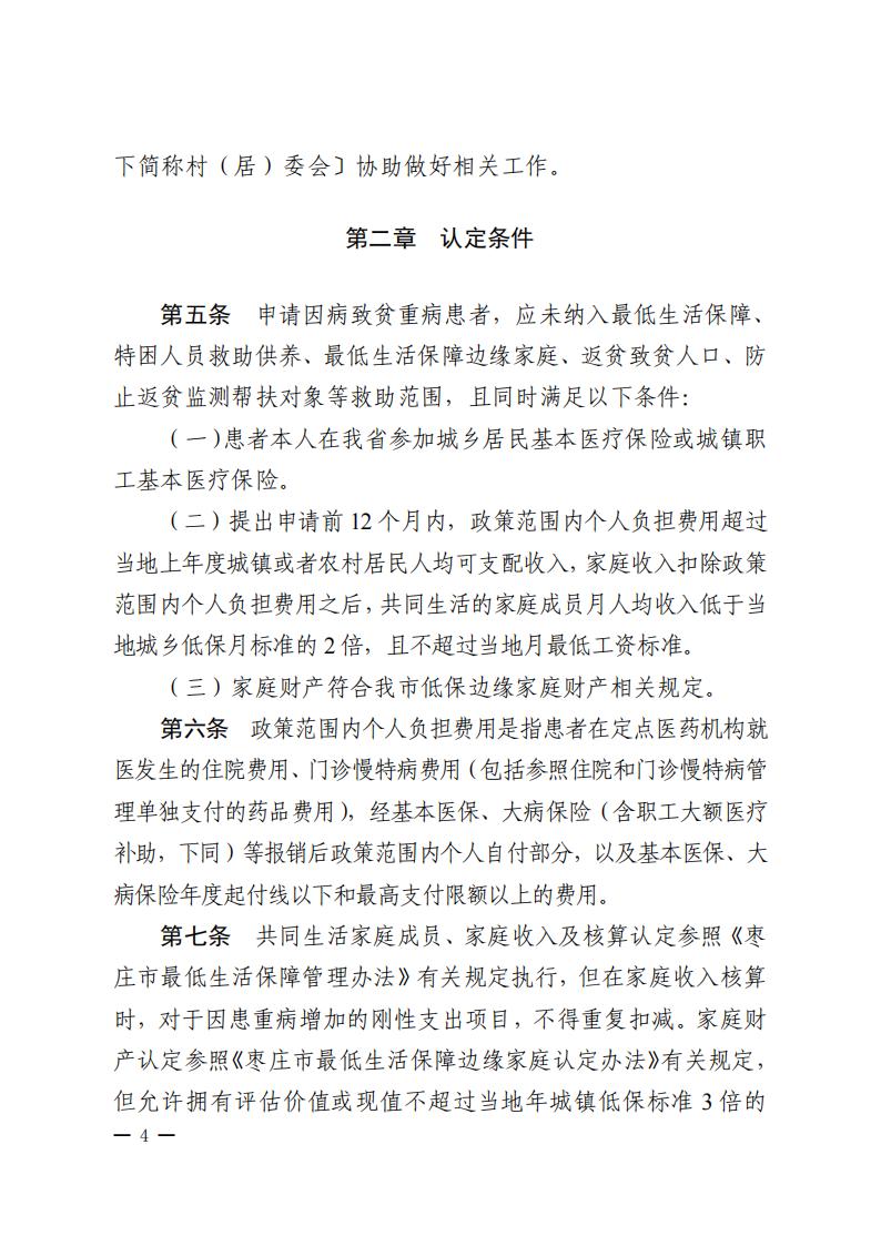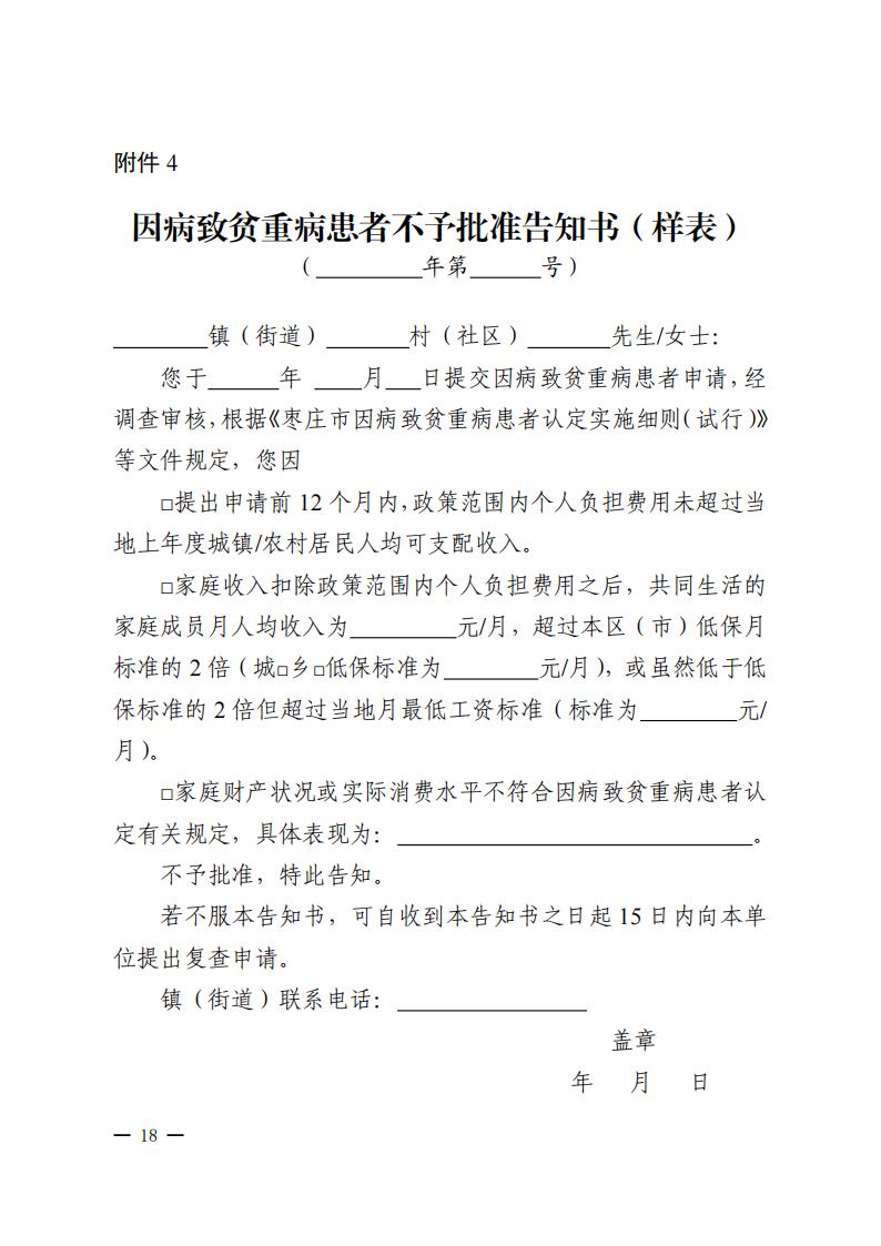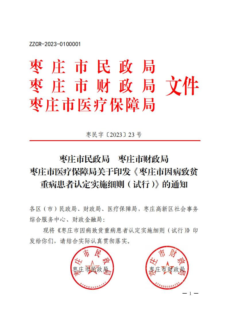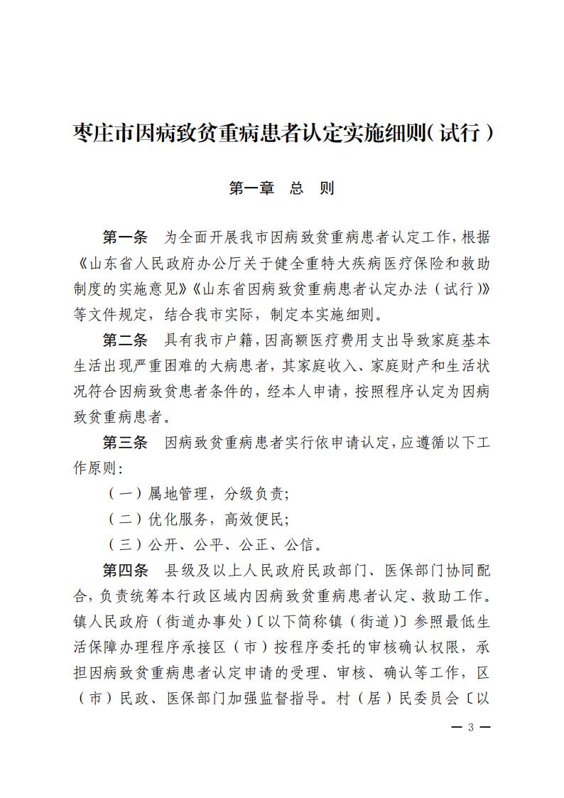枣庄市民政局枣庄市财政局 枣庄市医疗保障局关于印发《枣庄市因病致贫重病患者认定实施细则(试行)》的通知