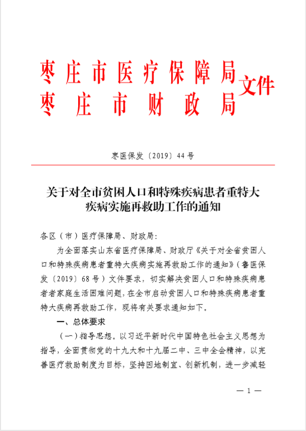 枣医保发[2019]44号关于对全市贫困人口和特殊疾病患者重特大疾病实施再救助工作的通知