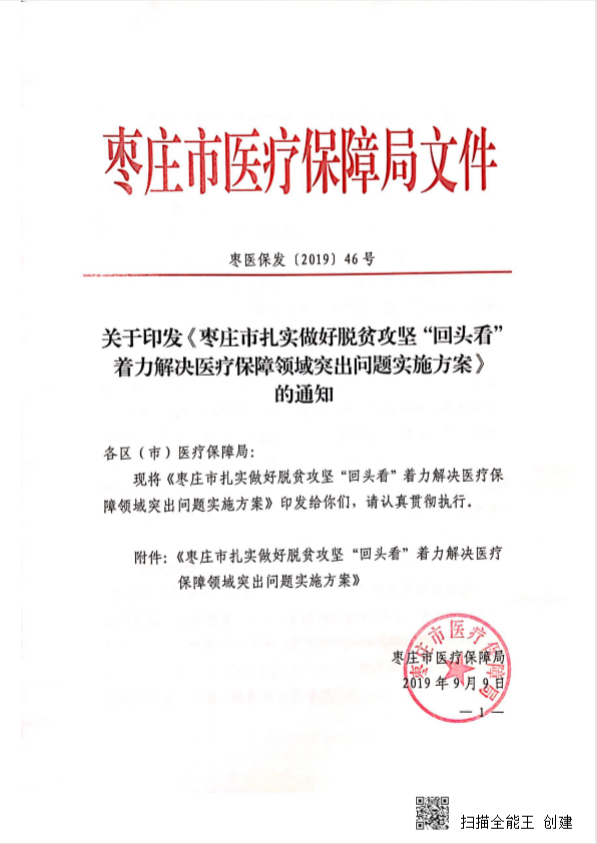 枣医保发〔2019〕46号关于印发《枣庄市扎实做好脱贫攻坚“回头看”着力解决医疗保障领域突出问题实施方案》的通知