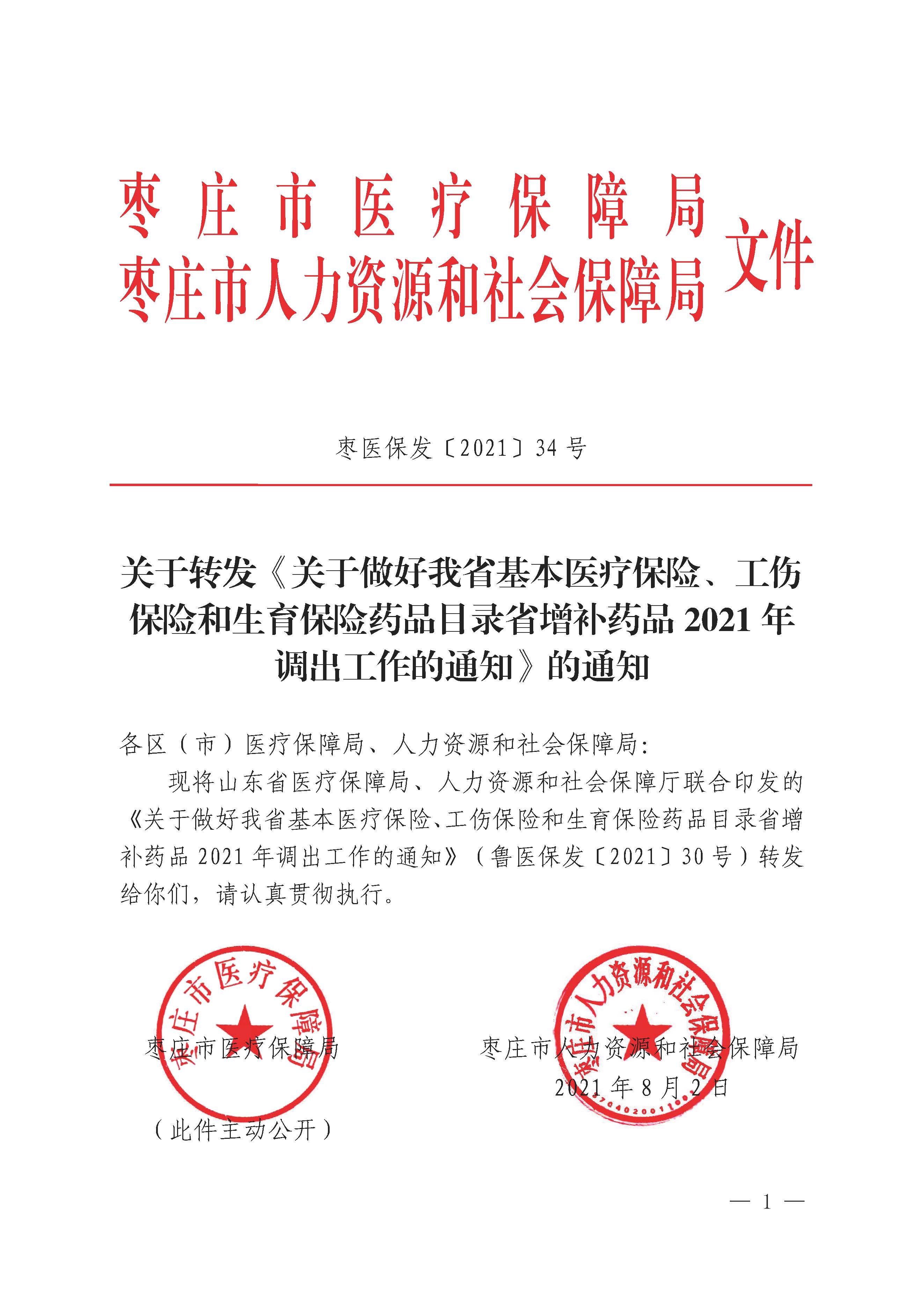 枣医保发【2021】34号文-关于转发《关于做好我省基本医疗保险、工伤保险和生育保险药品目录省增补药品2021年调出工作的通知》的通知.pdf