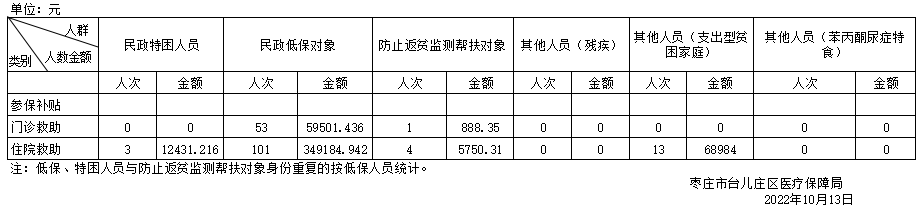 台儿庄区2022年第三季度医疗救助人次及资金支出情况