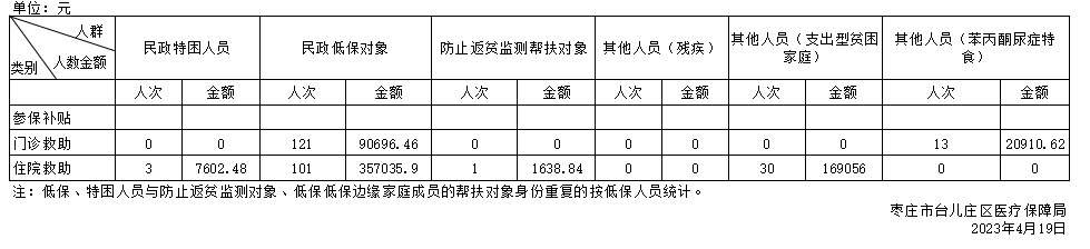 • 标  题:台儿庄区2023年第一季度医疗救助人次及资金支出情况