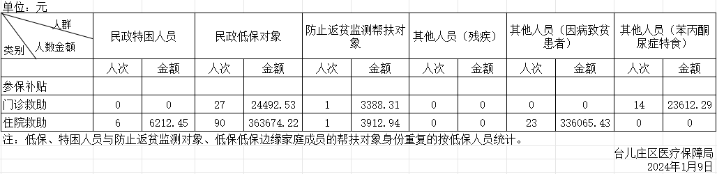 台儿庄区2023年第四季度医疗救助人次及资金支出情况