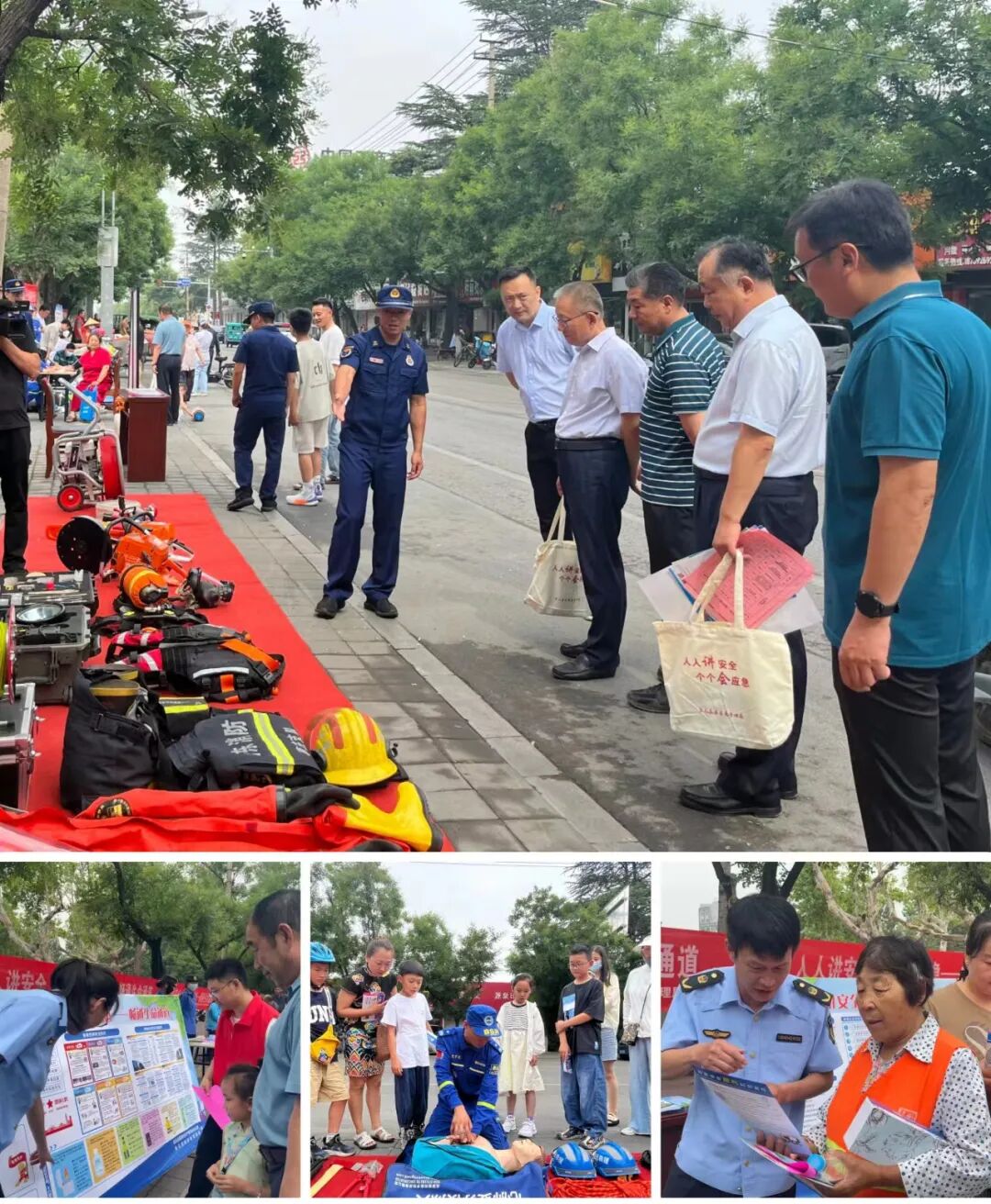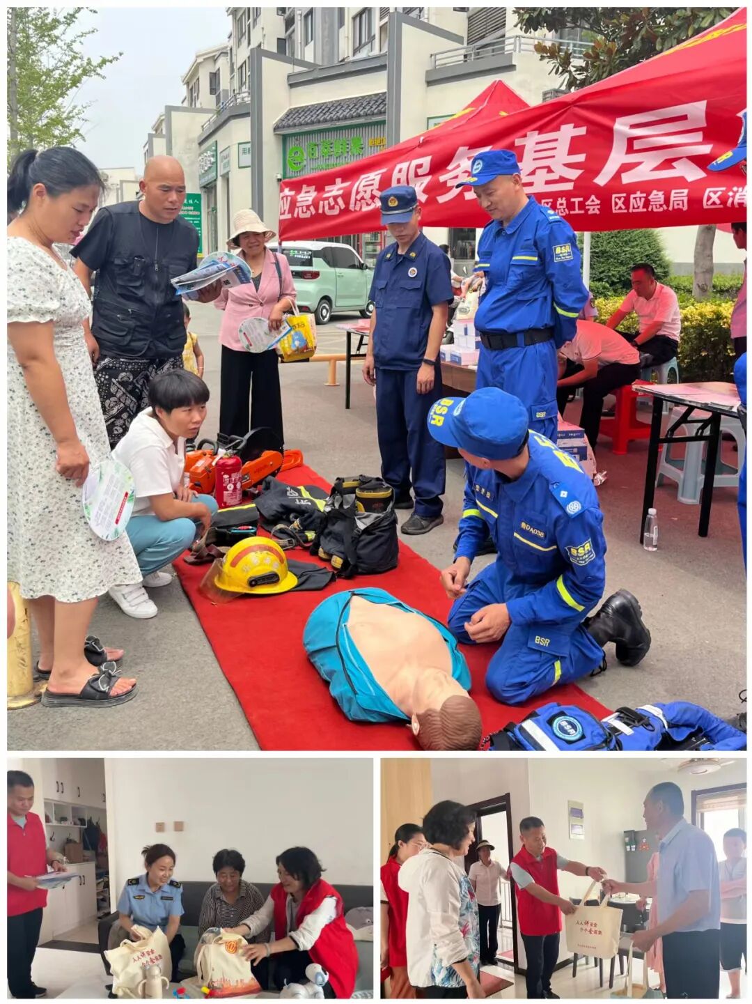 在府前广场活动现场,以“人人讲安全、个个会应急——畅通生命通道”为主题,各单位通过摆放宣传展板、悬挂横幅、设立咨询台、发放安全知识手册、知识宣讲等形式,向群众宣传安全生产、消防、燃气、用电、特种设备等方面安全知识,活动现场发放宣传资料2000余份,摆放展板32面,接受群众咨询620余人次。在应急队伍和装备体验区,安全志愿服务队队员向现场群众演示了应急抢救、心肺复苏、逃生自救等避险自救互救技能,引起了广大群众的极大兴趣和参与热情。在明远社区,安全志愿服务队队员组织物业人员开展了应急逃生疏散演练,实地走访了小区居民和职工群众,送安全知识上门,进行入户提醒,同时为他们送上了家用急救包和夏季清凉用品。