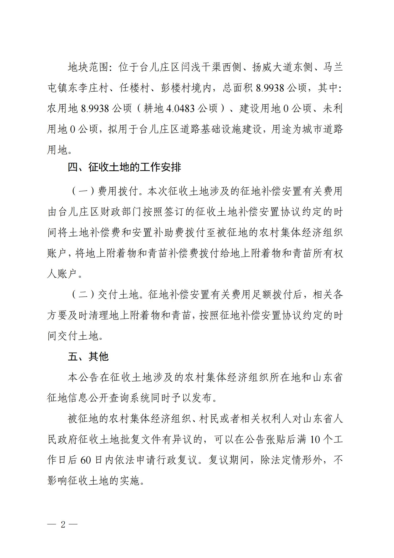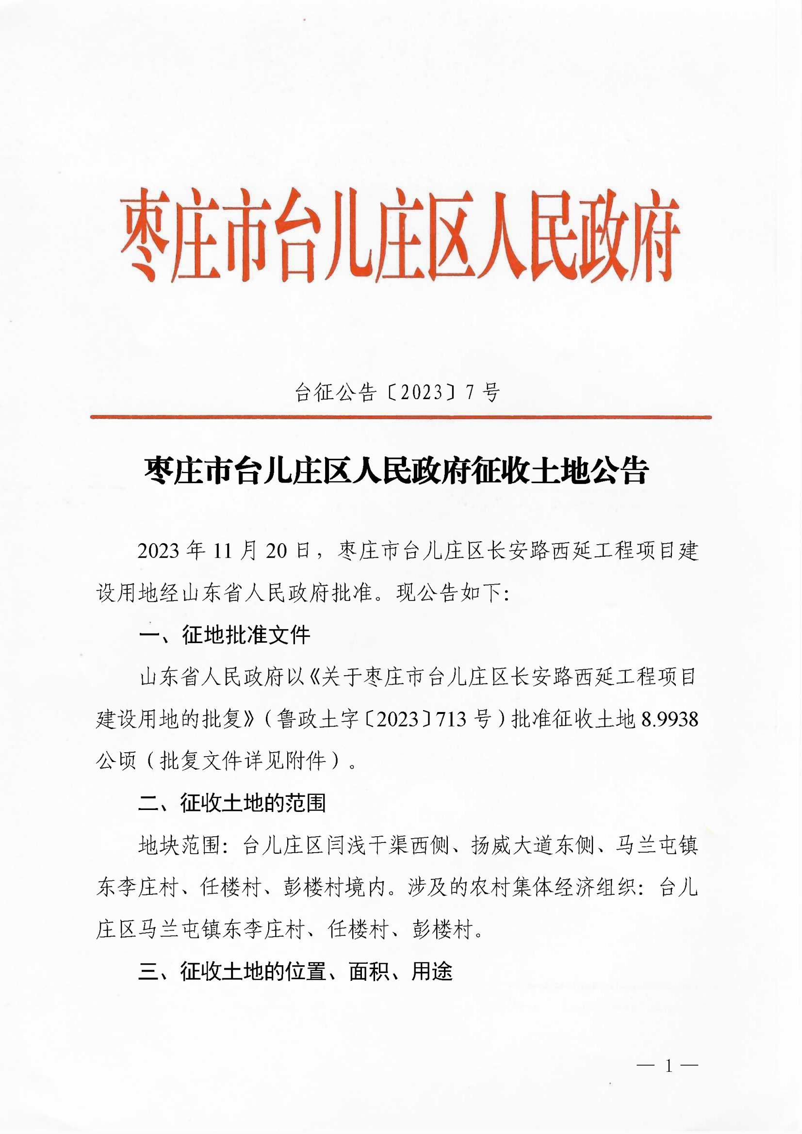 • 标  题:枣庄市台儿庄区人民政府征收土地公告(台征公告〔2023〕7号)