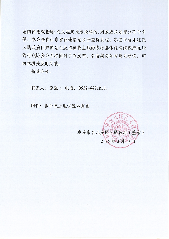 枣庄市台儿庄区人民政府土地征收预公告