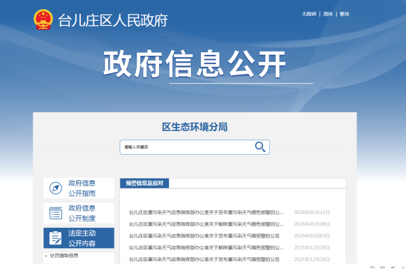 枣庄市生态环境局台儿庄分局2025年政府信息公开工作年度报告