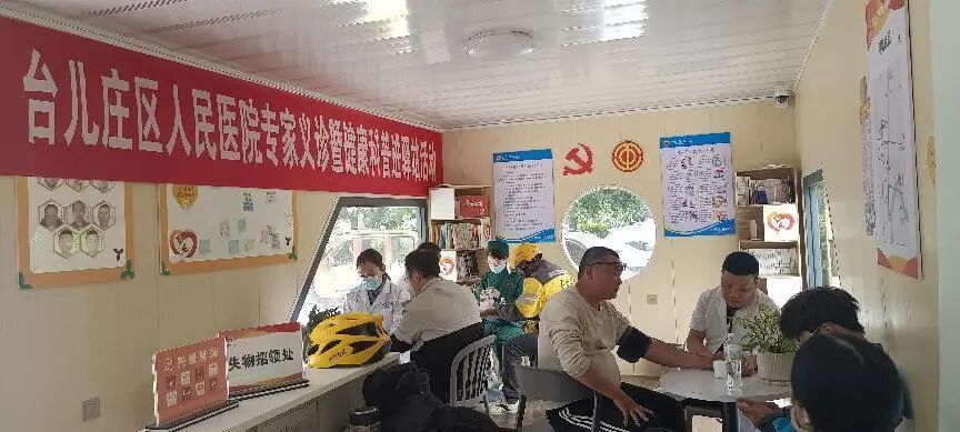 4月28日下午,台儿庄区人民医院组织内科、外科专家来到水上公园的驿站开展义诊送健康活动。为广大群众提供医疗咨询、用药指导及诊疗服务。